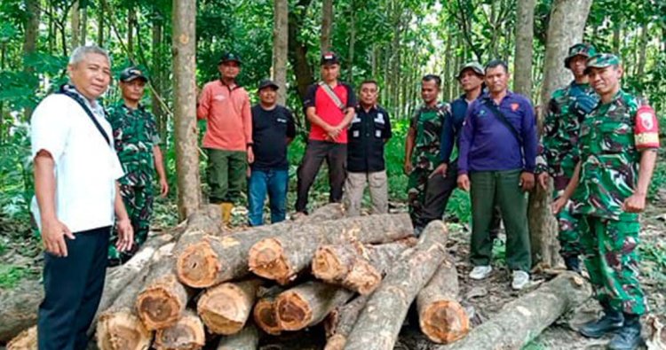 TUBAN, - Guna menjaga kelestarian hutan lindung, Babinsa Koramil 0811/13 Tambakboyo bersama Asper, Mantri dan kepoilisian kehutanan berhasil gagalkan aksi perusakan dan pencurian Pohon kayu jati bertempat di RPH Ngelo, BKPH Ngulahan, Desa Gemulung, Kecamatan Tambakboyo, Kabupaten Tuban, Jawa Timur. Kamis, (08/01/2026)