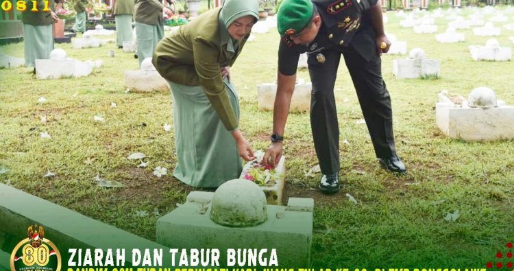 TUBAN, - Untuk memperingati perjuangan para pahlawan yang telah gugur dalam berjuang untuk mempertahankan kemerdekaan Republik Indonesia, Komandan Kodim 0811/Tuban Letkol Inf Galih Sakti Pramudyo memimpin Upacara Ziarah Rombongan dalam rangka Hari Juang TNI AD ke 80 Tahun 2025 bertempat di TMP (Taman Makam Pahlawan) Ronggolawe Jl. Pahlawan Kecamatan Semanding, Kabupaten Tuban. Kamis (11/12/2025).