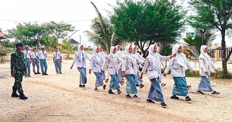TUBAN, - Untuk membentuk kedisiplinan dan kekompakkan sejak dini, Babinsa Koramil 0811/02 Palang, Serka Madro'i melaksanakan kegiatan pemberian materi LBB dan Wawasan Kebangsaan Kedisiplinan dan kekompakkan siswa Siswi SMKS Darul Ma'wah Plumpang, bertempat di pantai Kelapa Kecamatan Palang, Kabupaten Tuban. Kamis (29/01/2026).